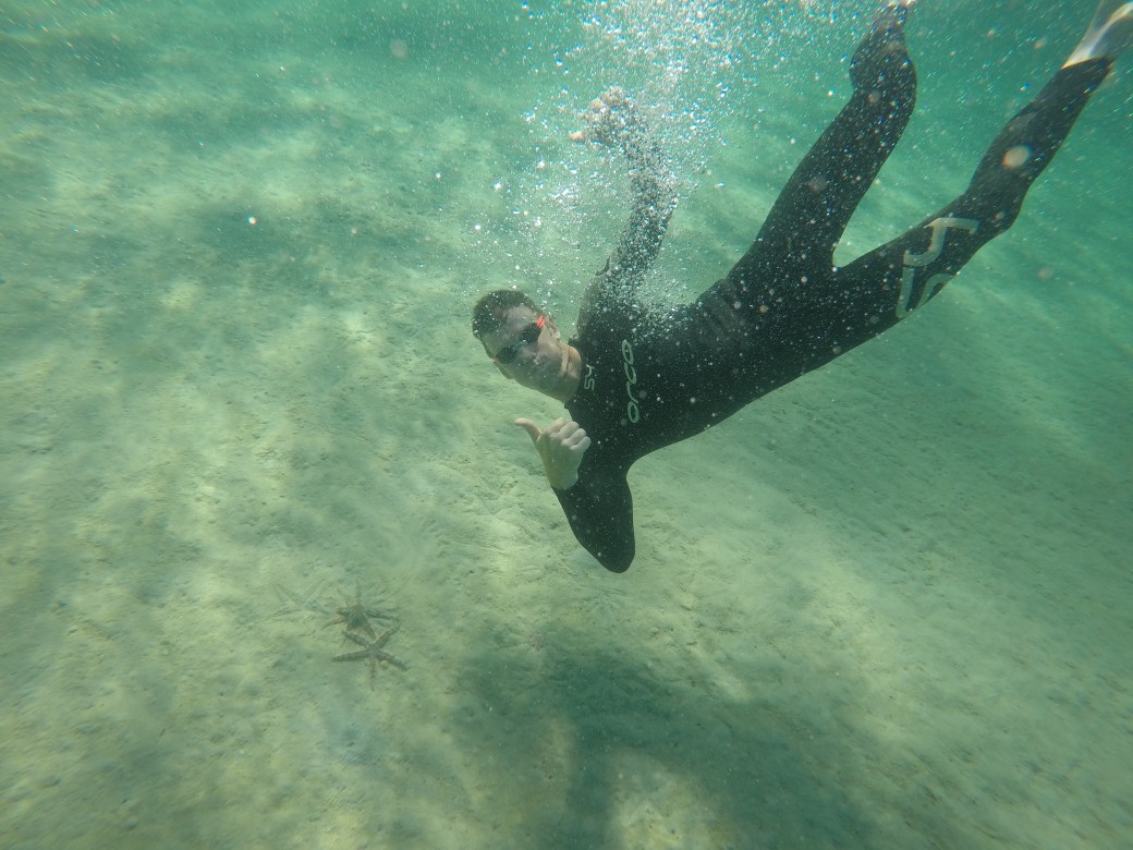 On Friday we headed into Busselton Jetty for the morning swim trial. Ironman had arranged water safety and a few buoys set out, approximately 500m alongside the jetty. It was amazing, the water was fresh, without being bitterly cold, I was grateful for my wetsuit. But the water clarity was what really blew my mind! I cruised out to the furthest buoy and spotted a couple of starfish at the bottom, grabbed a couple of snaps, chatted to the amazing lifesavers and then headed back to shore.