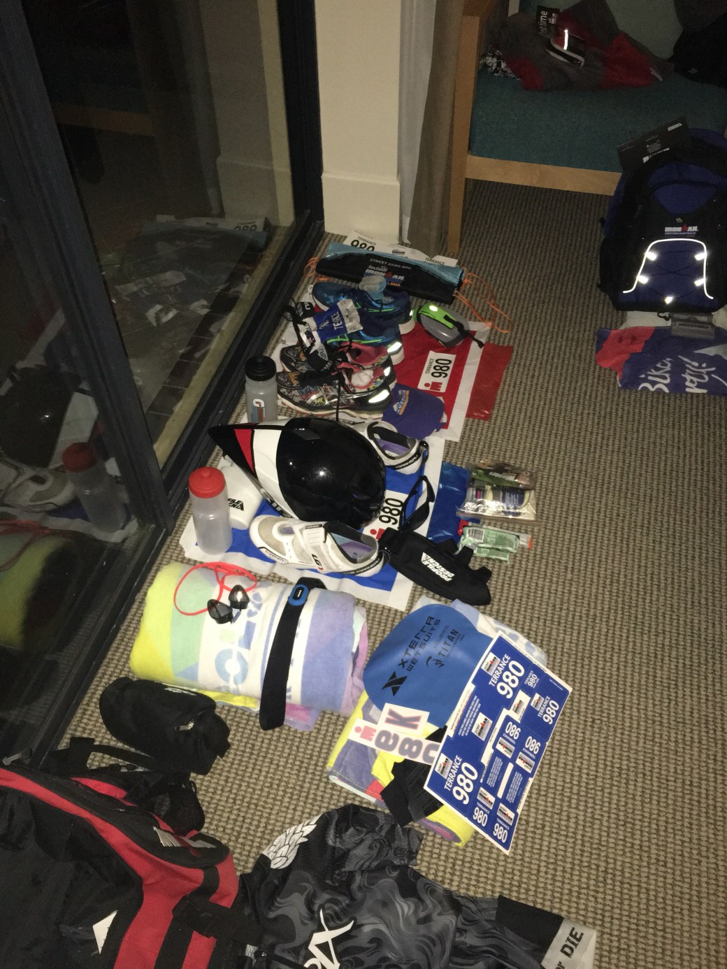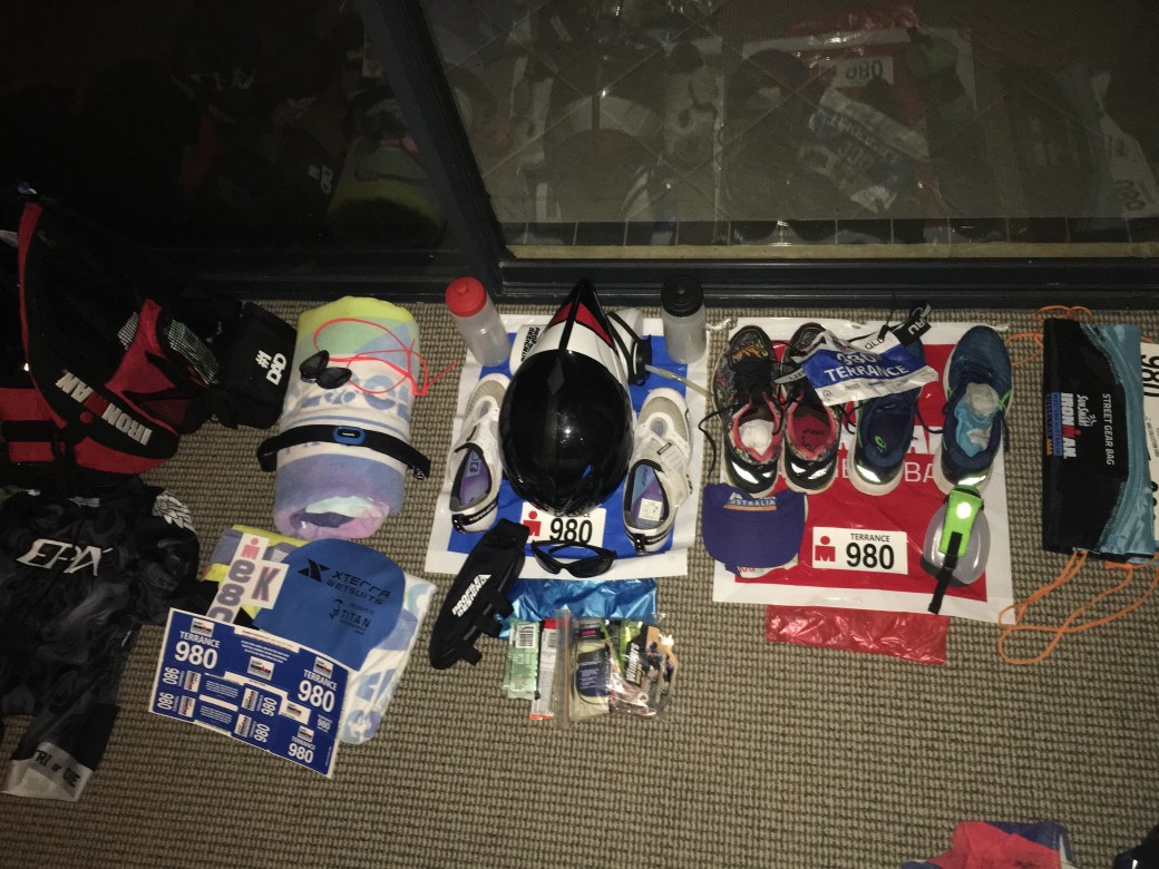 I took the time before bed to do the traditional transition layout on my bags, trying to assure myself that I hadn’t and wouldn’t forget anything. Sleep was welcome!