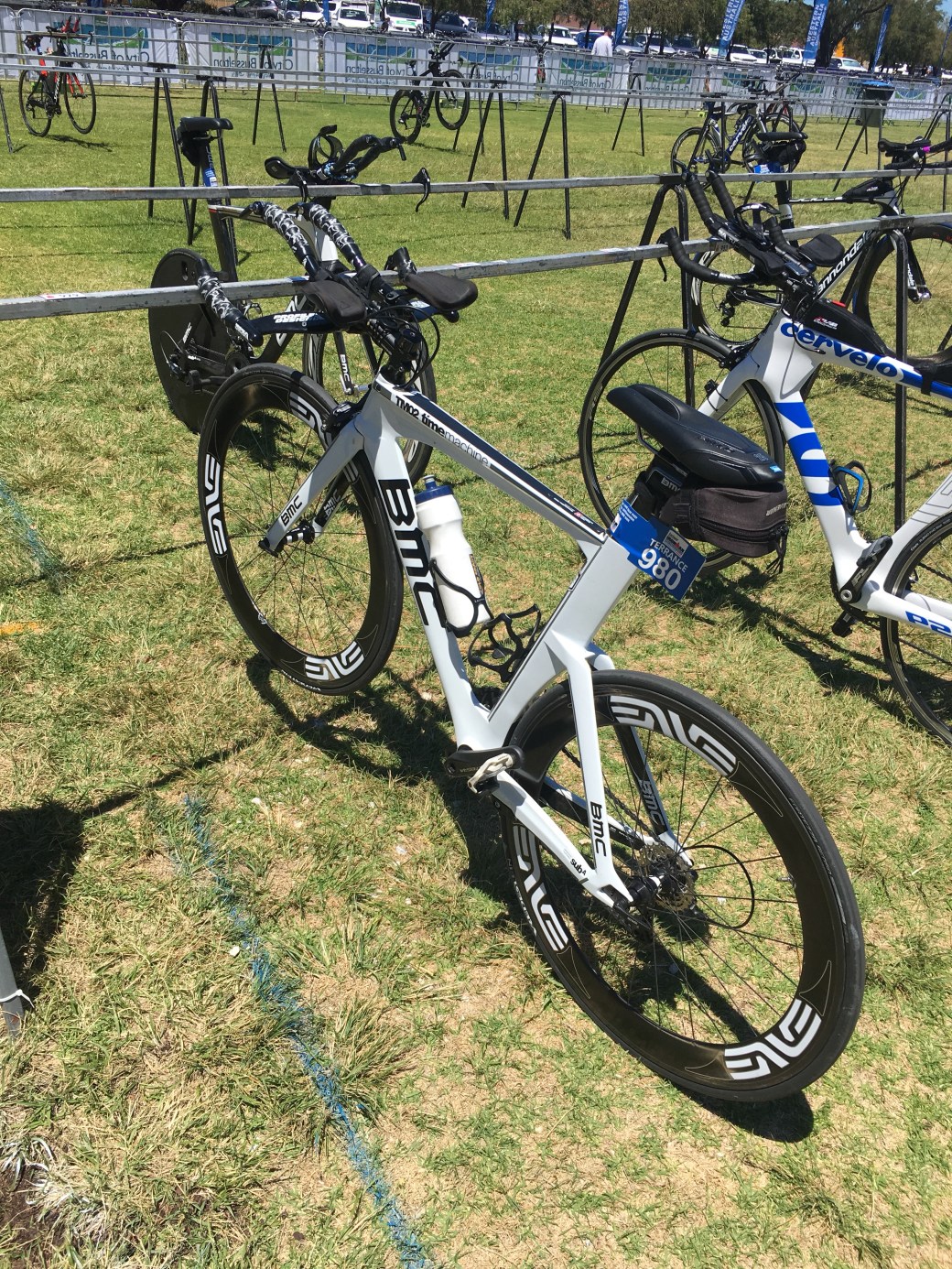 We actually woke only a few short hours later and decided to make hay, setting up the bike having breakfast and exploring the surroundings of the hotel with a short walk. Bike setup compete, we headed to the event village to register and check out the expo. Transition was being setup and the vibe was pretty exciting. The volunteers in the registration tent were very enthusiastic, ringing bells for every first timer that registered! We collected our registration kits, weighed in at 72.4kg (which was about 2kg higher than I expected and I was told their scales were a little unreliable)! With that all done we wandered the expo perusing all the nick nacks of the triathlon world.