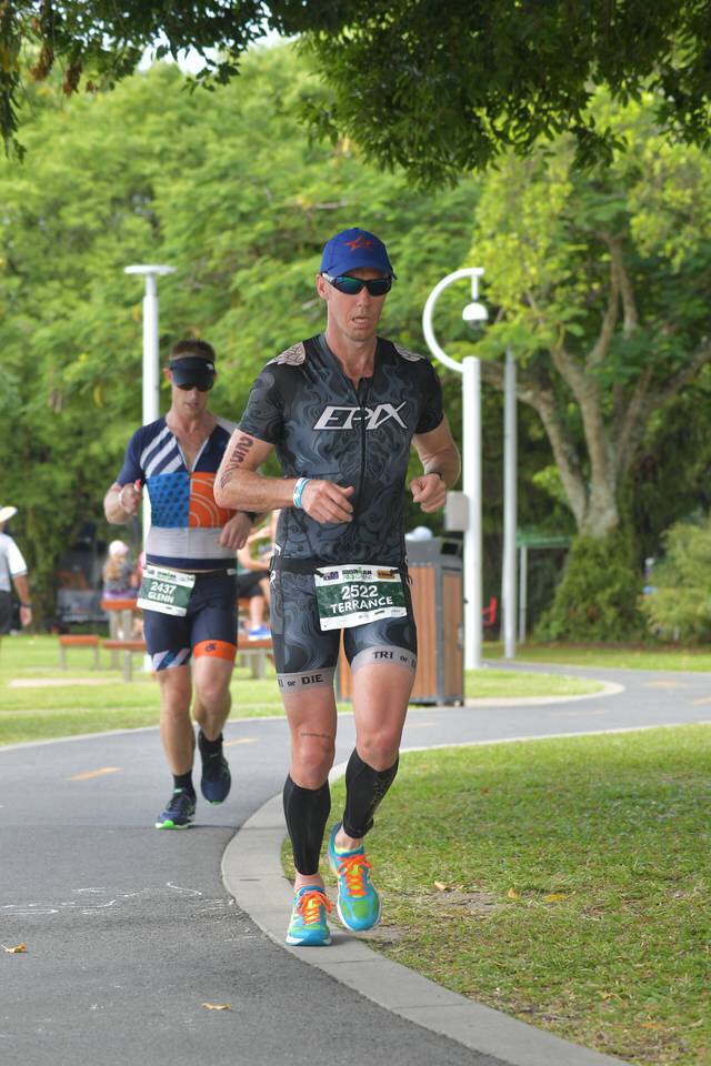This bike course is truly one of the best on the Ironman circuit! As normal we were blessed with a tail wind on the ride north and a head wind on the longer run South back toward Cairns! I watched my Pierre number trying to stay within my 210-220 goal! The head wind was a struggle but not enough to slow my progress too much!